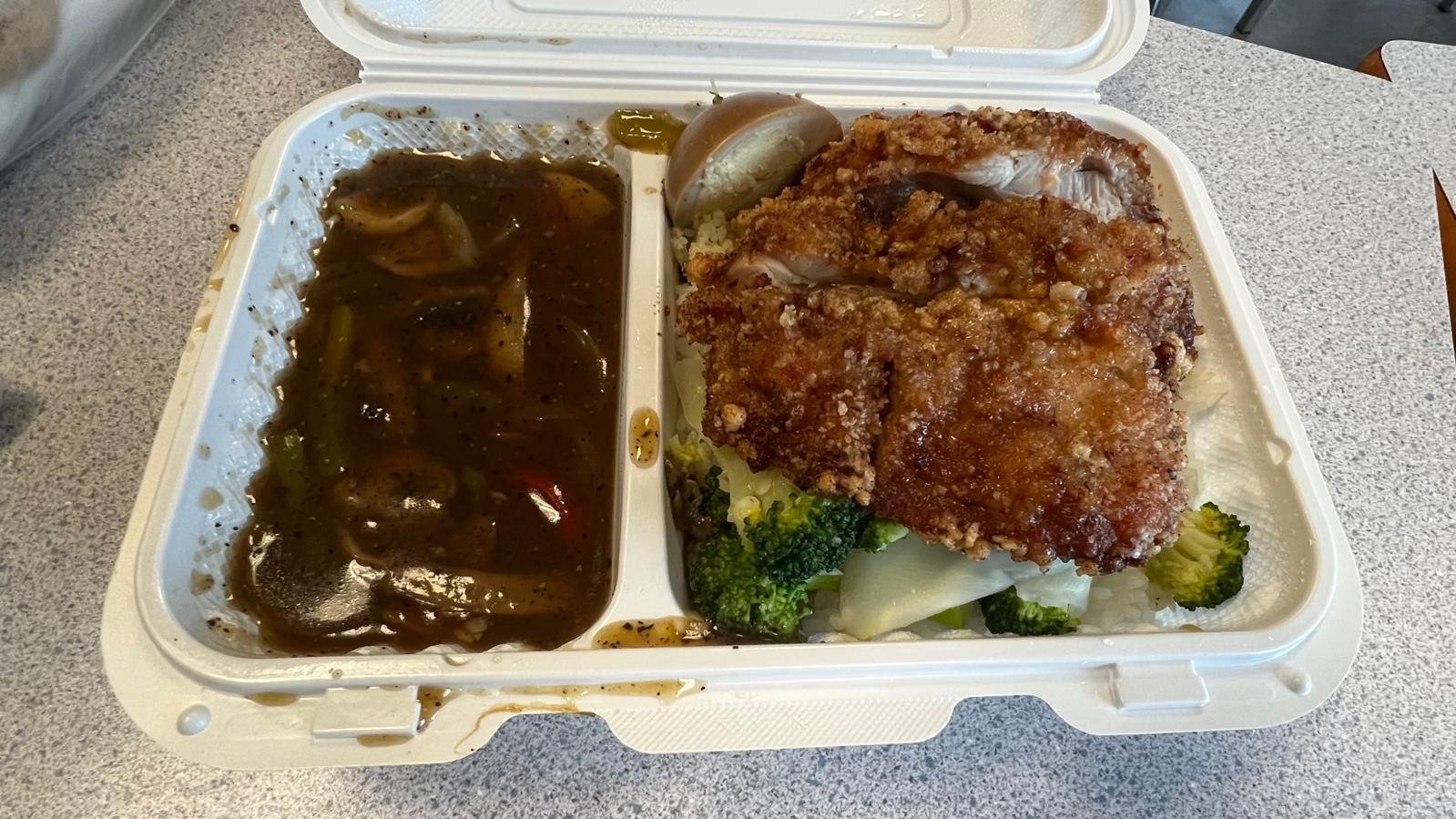 Amazing black pepper sauce served with chicken, veggies and multiple side dishes. Served from Orange Corner restaurant in kerrisdale!
