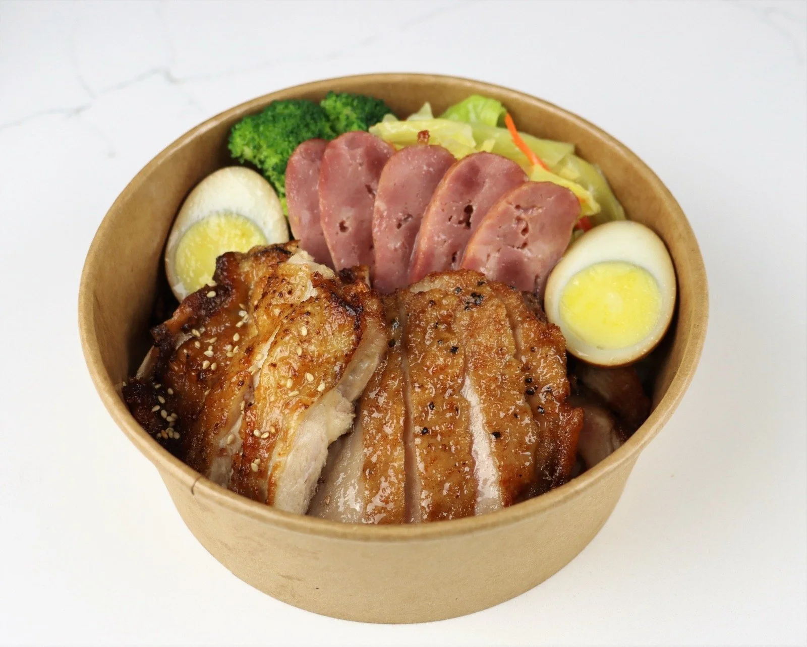 Myst Bistros amazing railway bento includes a chicken cutlet on rice with 2 healthy side dishes. Don't forget to order a refreshing green tea to accompany your meal.